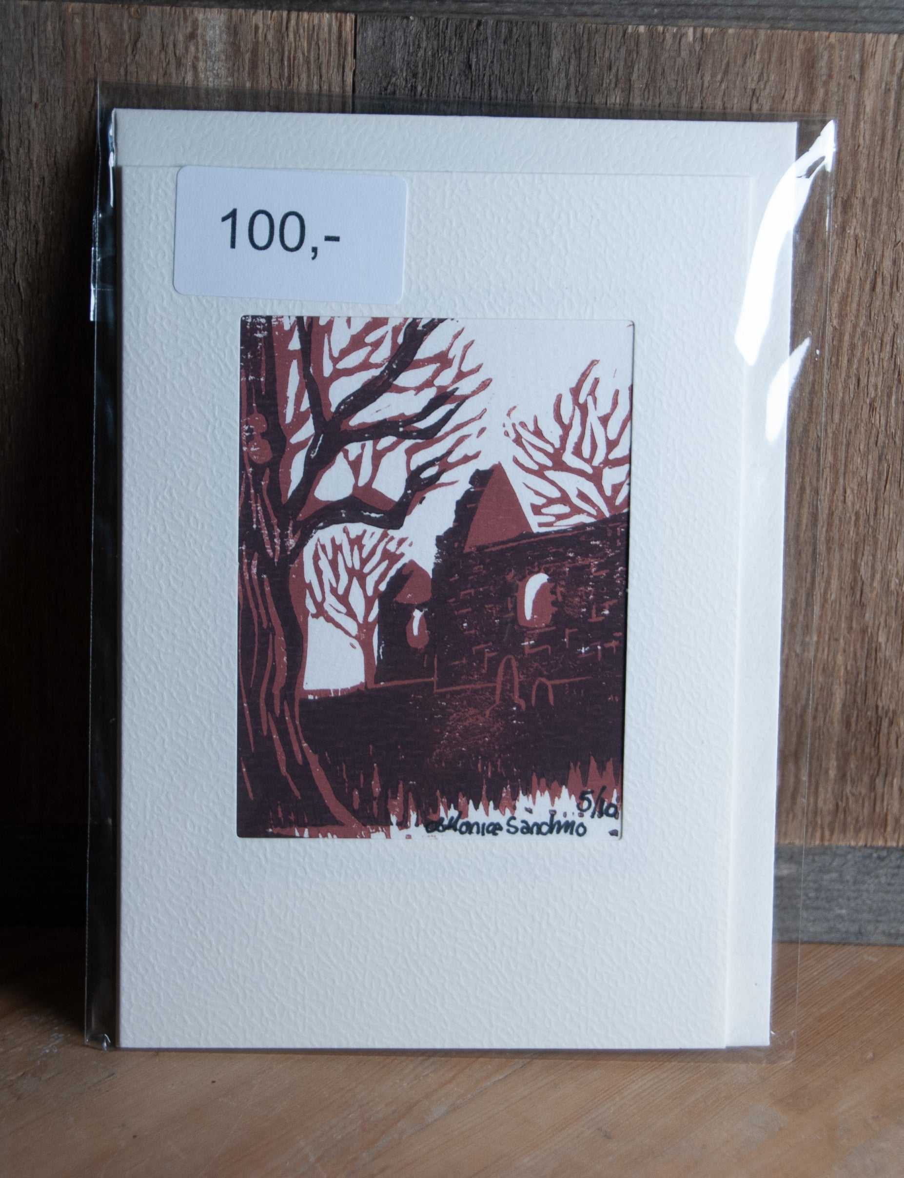 Dette kortet er håndlaget linosnitt/trykk. Hvert kort er unikt trykt for hånd, noe som gjør at dette er et helt unikt eksemplar. Du får et ekte håndlaget kunstverk som det kun finnes ett av.
