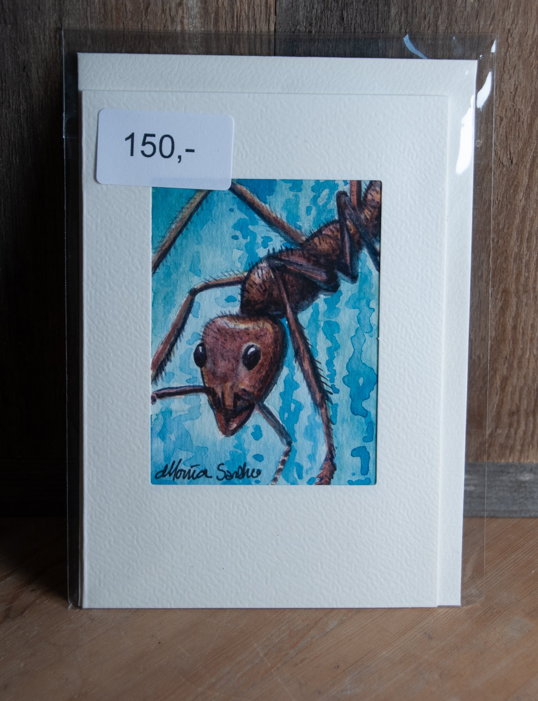 Dette er et helt unikt akvarellkort, malt for hånd med omhu og detaljer. Perfekt til den som setter pris på insekter, naturmotiver, håndverk og originalitet.
