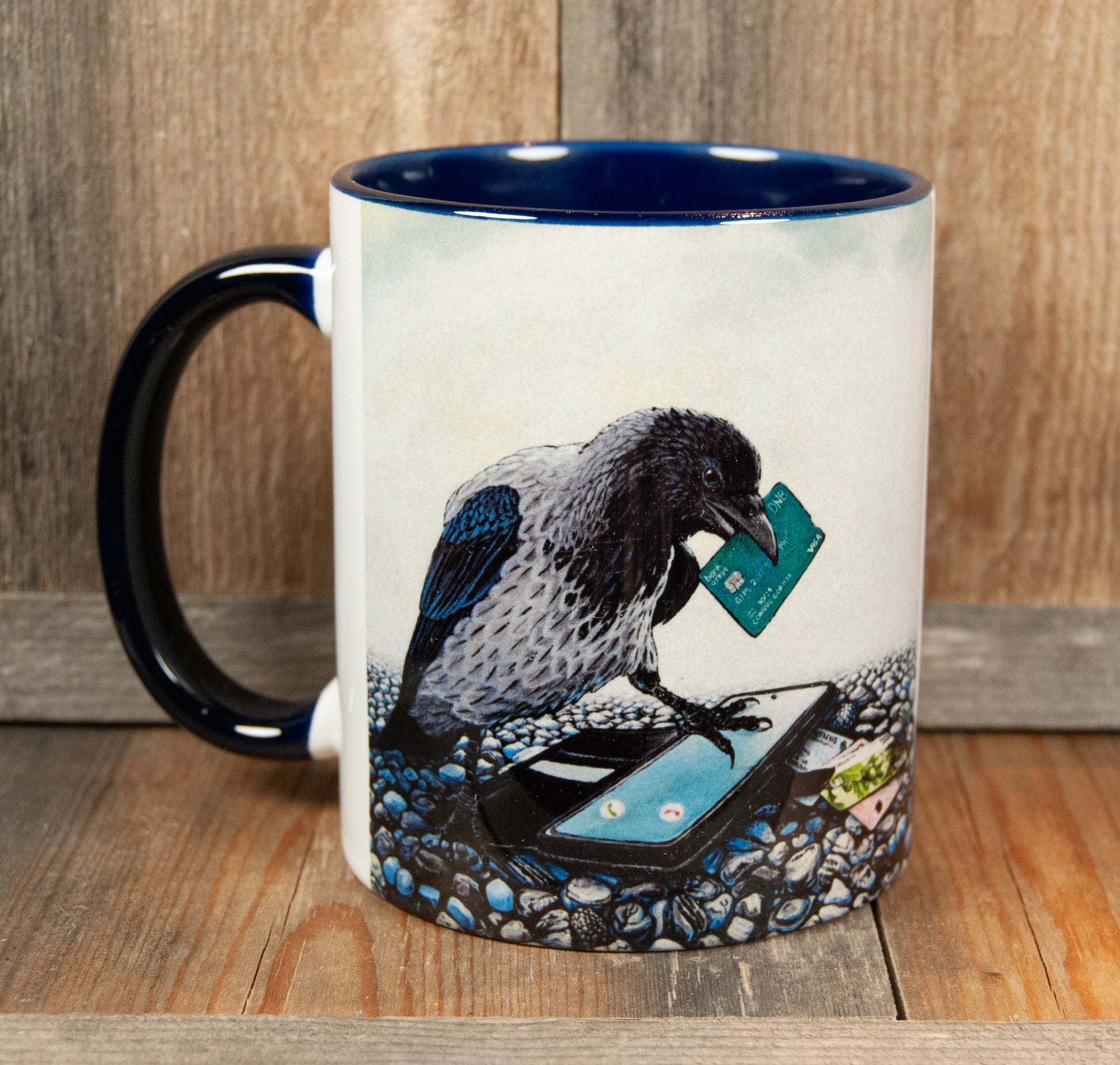 En humoristisk keramikkopp med motiv fra originalmaleriet "Ugagnskråka" – perfekt for deg som kjenner en ugagnskråke eller to!