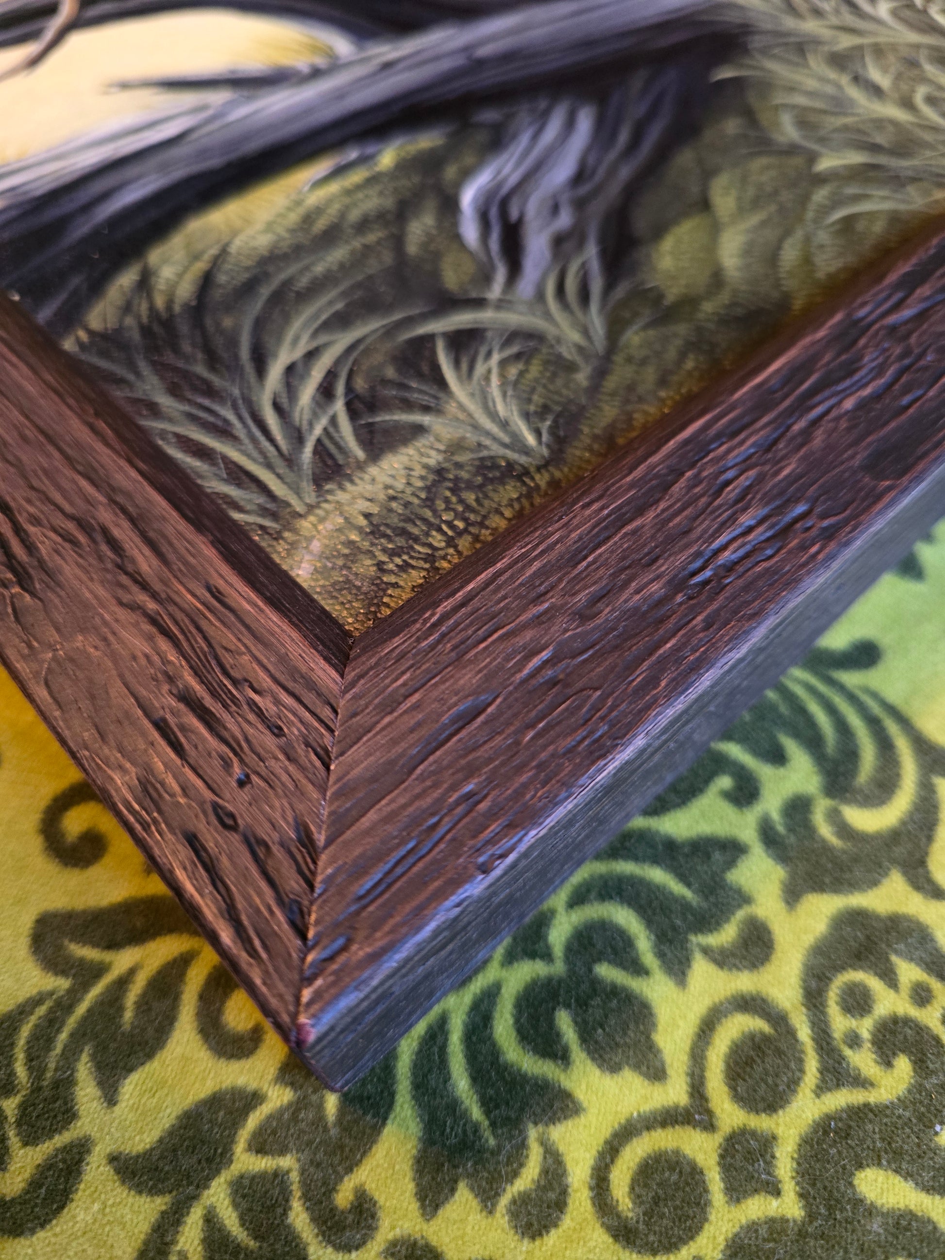Innrammet i flott rustikk brun ramme. Innrammet hos Håndtverksbua på Haga.