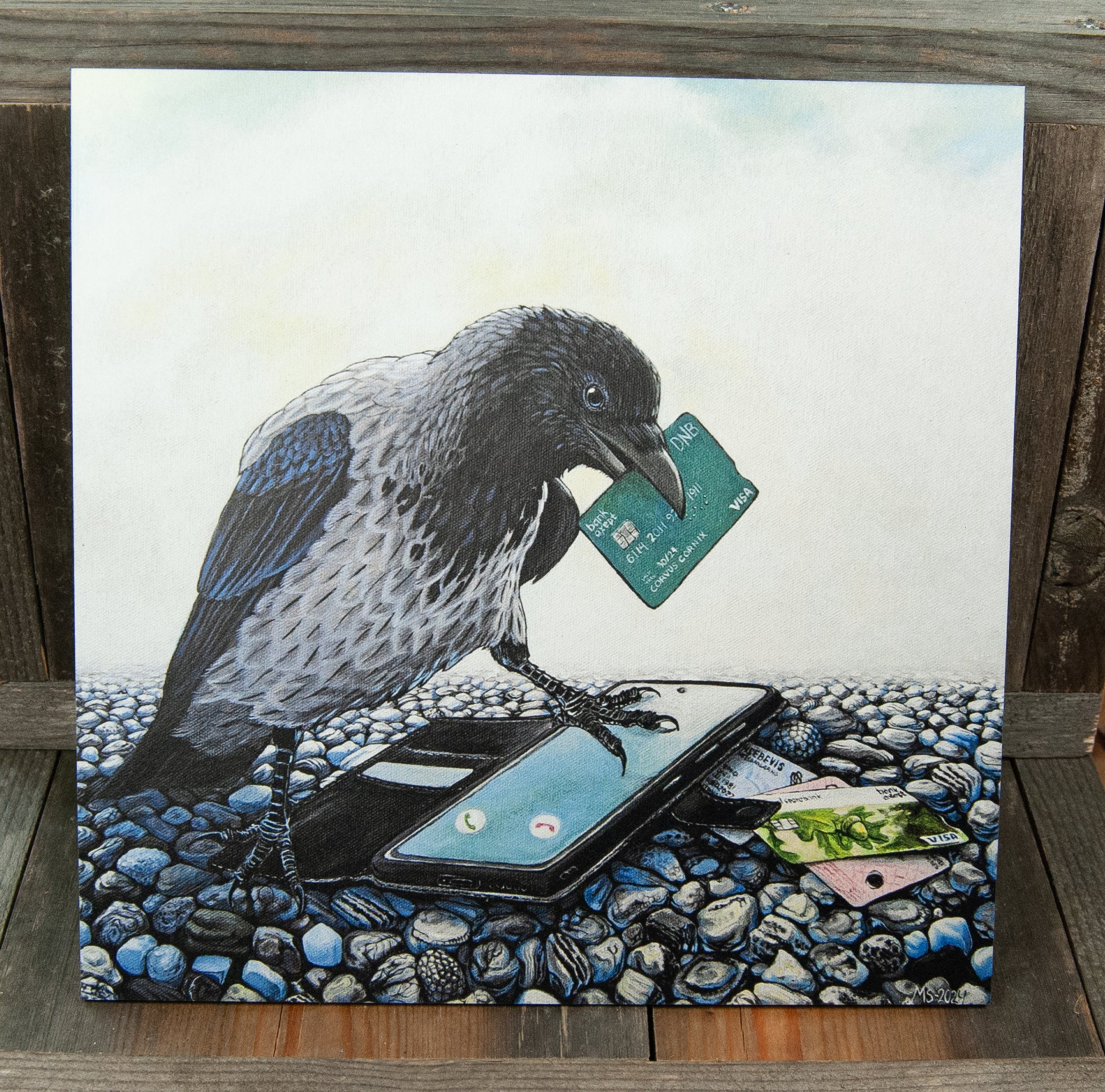 Alle kjenner vel en skikkelig ugagnskråke eller kjenner typen! Dette artige motivet viser en kråke med personlighet og humor. Som stor fan av disse intelligente og underholdende fuglene, måtte dette motivet bli til.